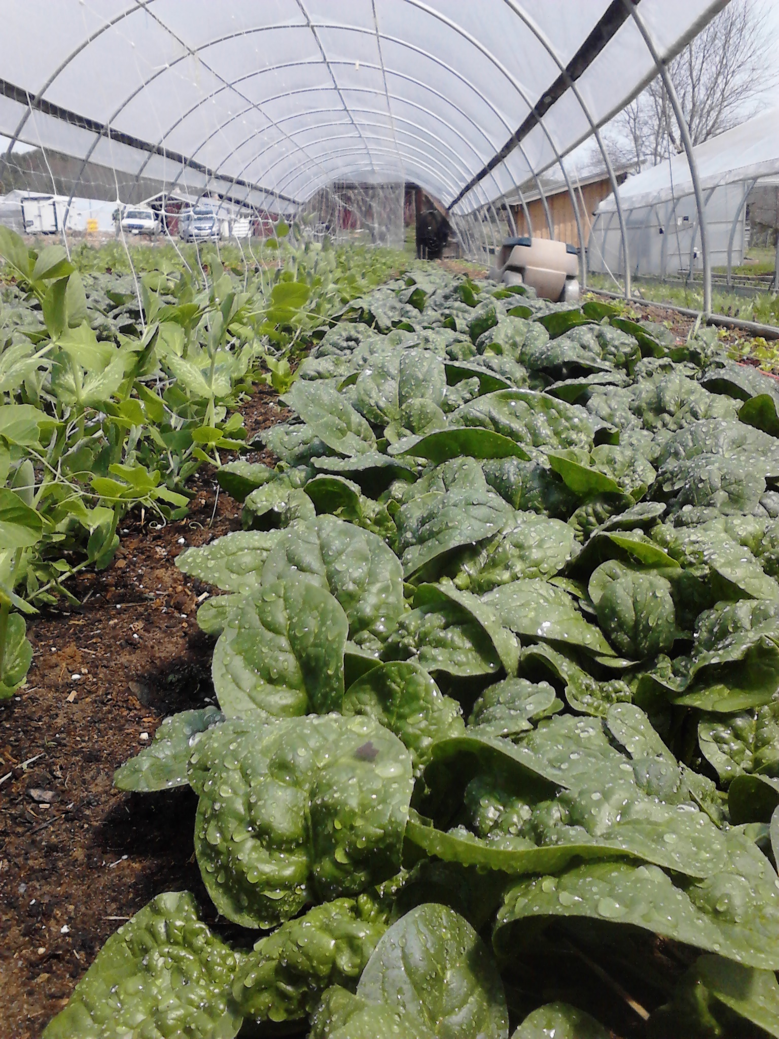 Long hoop house on April 20th after the spinach was cut back: